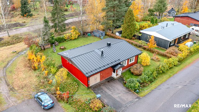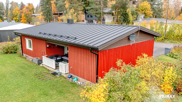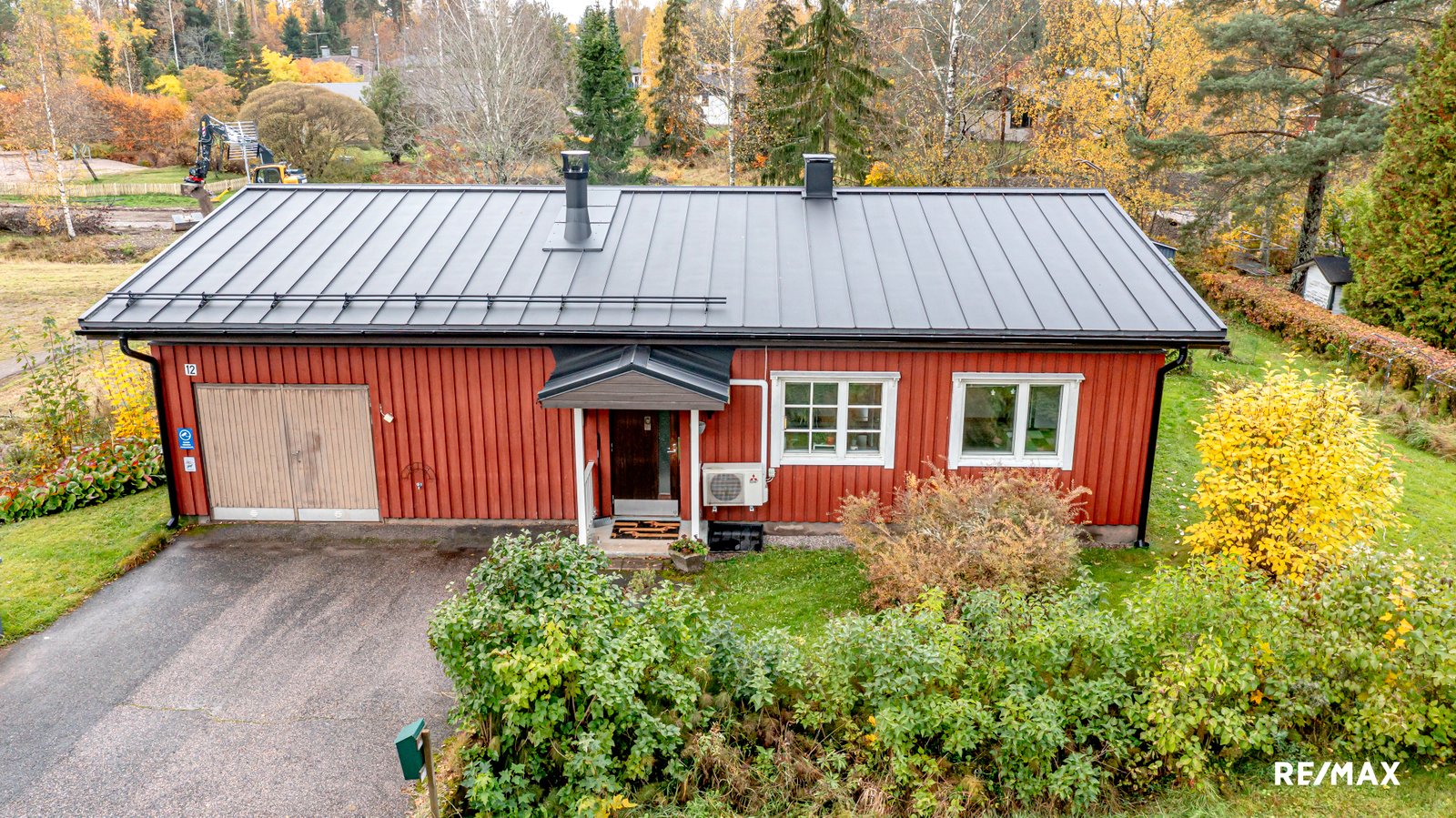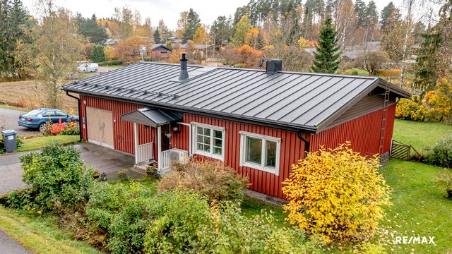 Tämä viehättävä puurakenteinen talo sijaitsee rauhallisella Riihenmäen alueella Mäntsälässä. Talon pihapiiri tarjoaa vehreän ympäristön marjapensaineen, ja katettu länsiterassi kutsuu nauttimaan iltapäivän auringosta.