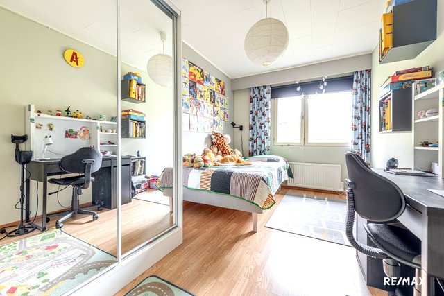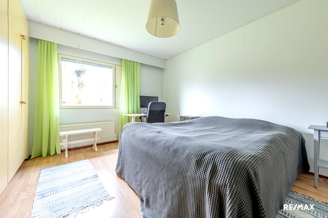 - Toisessa makuuhuoneessa seinät on tapetoitu