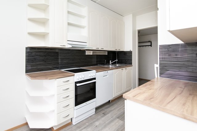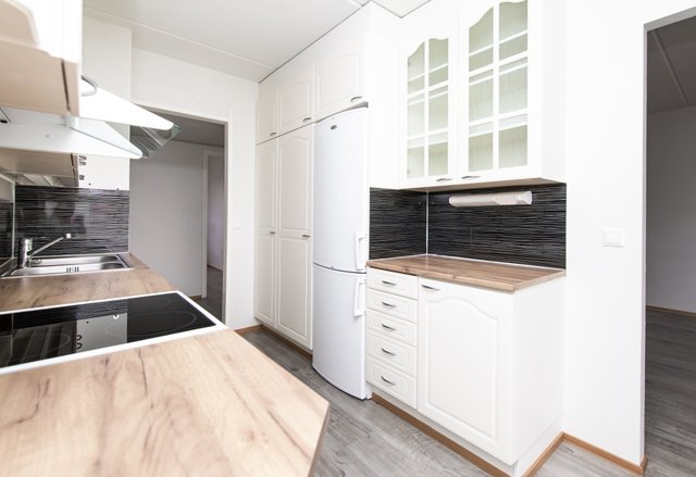 - Jääkaappipakastin, uuni, liesi, liesituuletin, ja astianpesukone