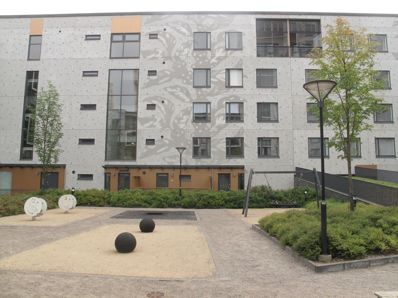 - Saunatilat, kerhohuone, pesula, kuivaushuone, VSS/irtaivarastot, talovarasto, ulkoiluvälinevarastot, lastenvaunuvarastot, jätehuone, siivouskomero ja tekniset tilat.