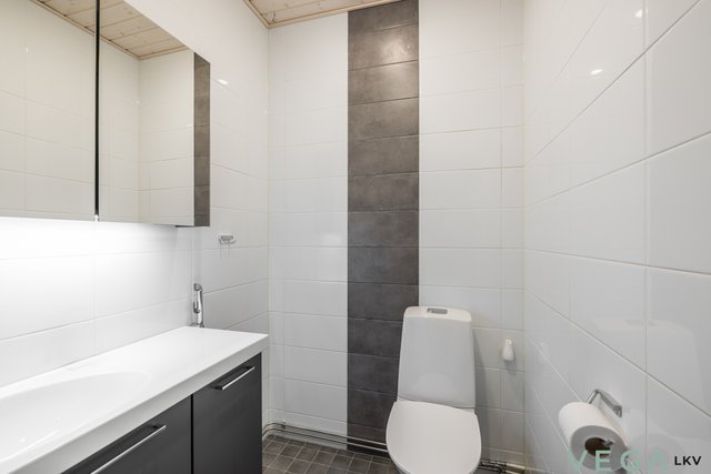 - Peilikaappi, pesuallas, allaskaappi, wc-istuin. Lattia ja seinät laatoitettu.
