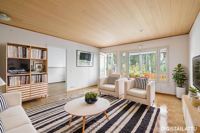 Asunnossa on kiva pohja, jossa on erillinen wc ja kylpyhuone. Omassa saunassa on haapapaneelit ja tervaleppälauteet. Saunan lämmität silloin kun haluat. Makuuhuoneet ovat erillään toisistaan ja keittiöön mahtuu ruokapöytä. Tilava olohuone. Kokonaisuuden täydentää tilava ulkovarasto aivan sisäänkäynnin yhteydessä ja autopaikka, jossa on latausmahdollisuus.