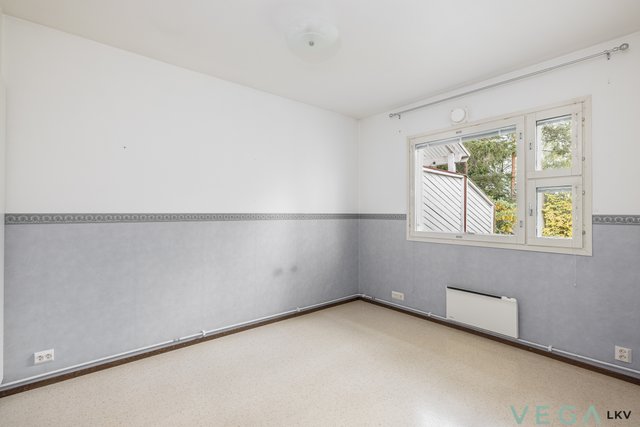 - Seinät maalattu/tapetoitu, toisessa laminaattilattia, toisessa muovimatto.