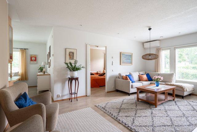 Kaksikerroksisessa talossa on kolme makuuhuonetta, tilava olohuone sekä erillinen ruokailutila. Suuri lasitettu terassi ja parveke tarjoavat upeat mahdollisuudet nauttia kesäpäivistä. Talon lämmitysjärjestelmä on monipuolinen, sisältäen sähkölämmityksen, ilmalämpöpumpun ja varaavan takan, mikä takaa mukavuuden ympäri vuoden.