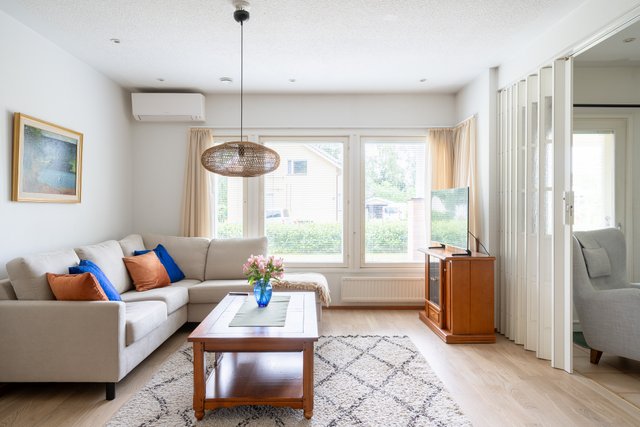 Sijainti on erinomainen; lähistöllä on päiväkoti ja koulu, ja Tampereen keskustaan on hyvät kulkuyhteydet niin bussilla kuin autolla. Alueella on myös erinomaiset pyöräilyreitit. Tämä koti tarjoaa rauhallisen ja viihtyisän asuinympäristön, jossa on kaikki tarvittava perhe-elämään.