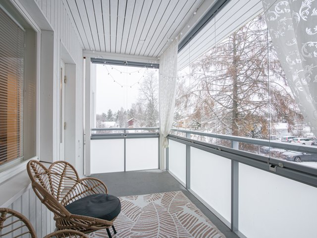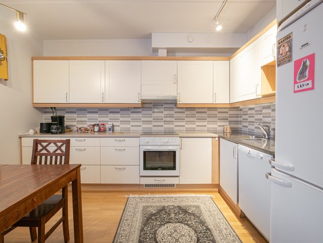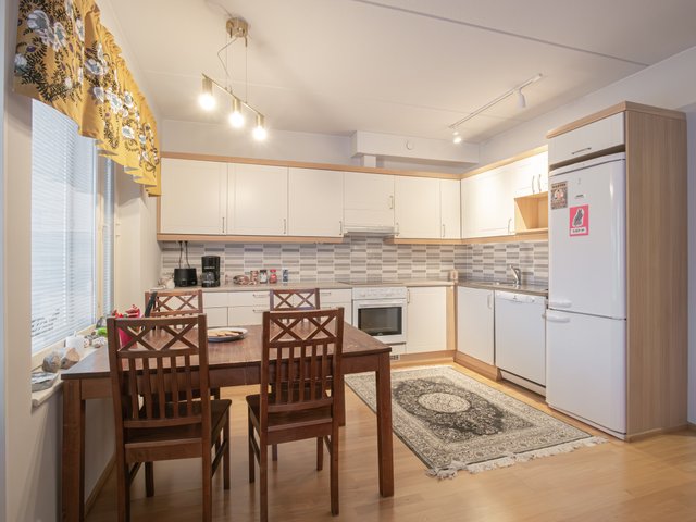 Keittiö on varustettu kaikilla tarpeellisilla kodinkoneilla ja tilava olohuone tarjoaa viihtyisän tilan oleskeluun. Kylpyhuoneessa on mukavuutta lisäävä lattialämmitys, lisäksi oman saunan led-valaistus luo rentouttavan tunnelman.