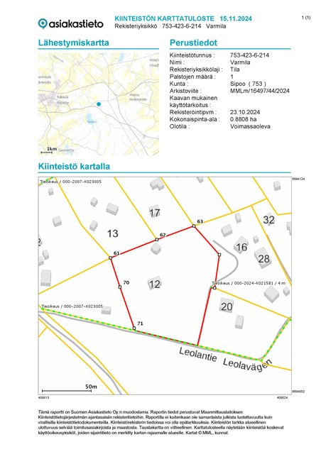 - Suunnitelutarveratkaisu myönnetty 7.10.2025. Lupatunnus 25-0253-SUU. - 300 k-m2 suuruinen kaksikerroksinen ja yksiasuntoinen asuinrakennus. - Rakentaminen tulee huolella sopeuttaa maastoon ja maisemaan. - Vanha asuinrakennus tulee purkaa viimeistään ennen uuden asuinrakennuksen käyttöönottoa. - Rakennuksen akustinen suunnittelu on toteutettava ääniympäristöasetuksen mukaisesti (YmA 796/2017). Meluselvitys ja suunnitelma melun suojauksesta tulee liittää rakentamislupahakemukseen. - Tämä päätös on voimassa 25.10.2027 asti. Luvan voimassaoloaikana tulee hakea rakennuslupa.