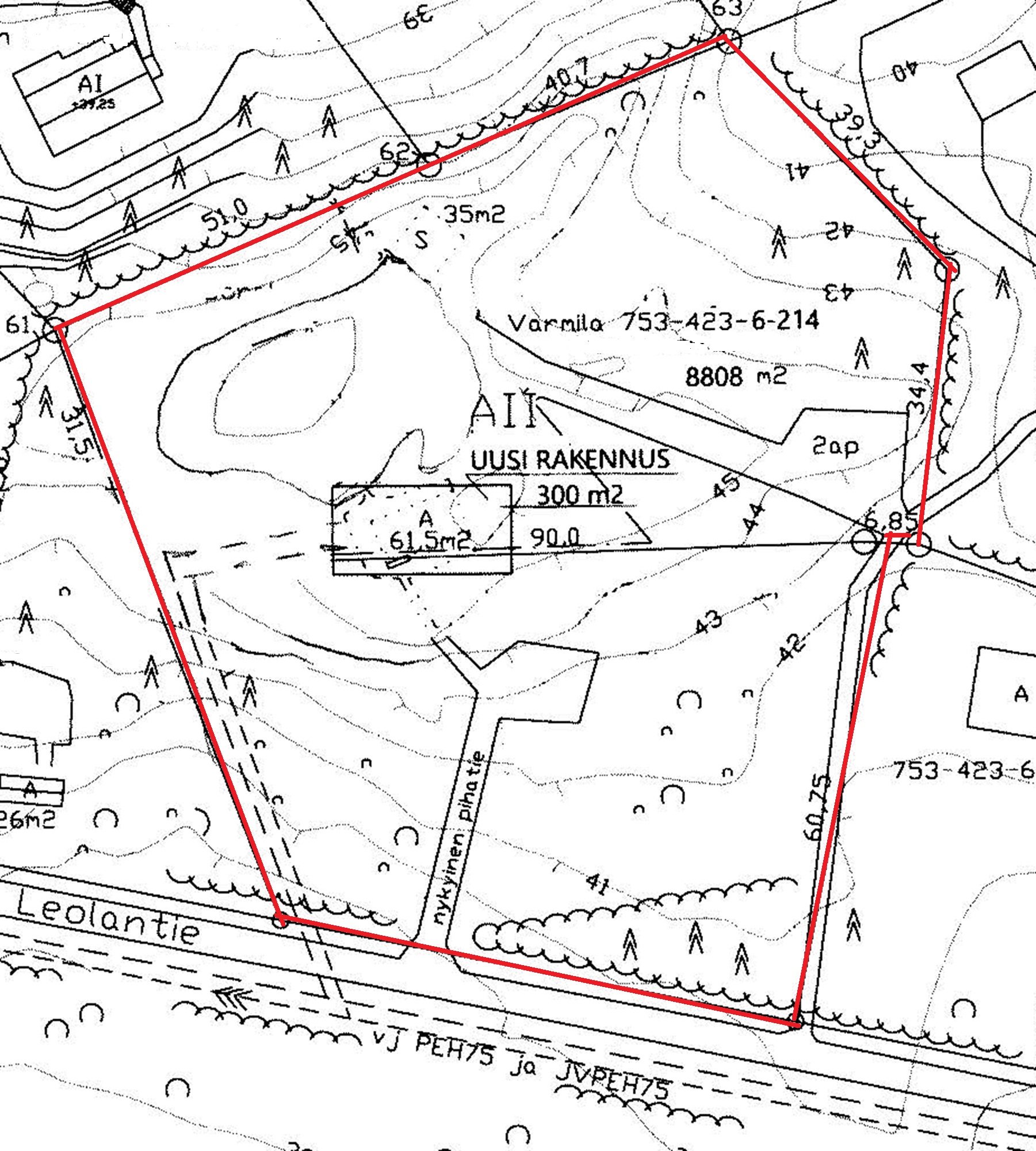Tontilla on sähköliittymä jo valmiina ja kunnallistekniikka kulkee Leolantien varressa. Myös tieliittymä valmiina. Vanha asuinrakennus on purettava ennen uuden asuinrakennuksen käyttöönottoa. Tontilla sijaitsee myös vanha purkukuntoinen saunarakennus.