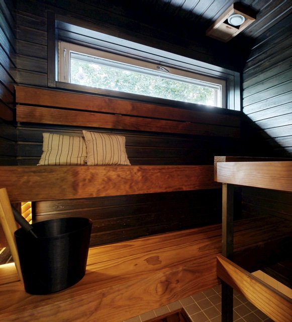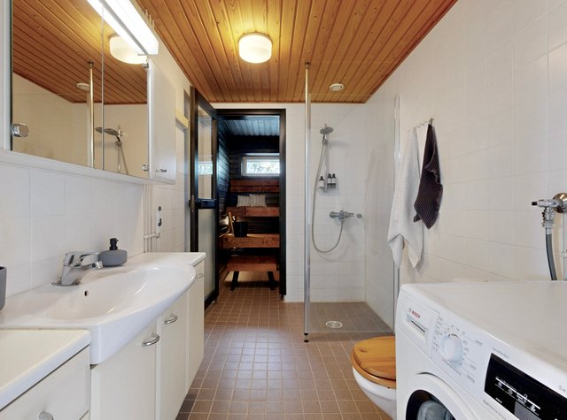 - VARUSTUS: Sähkökiuas. SEINÄ: Puu. LATTIA: Kaakeli.