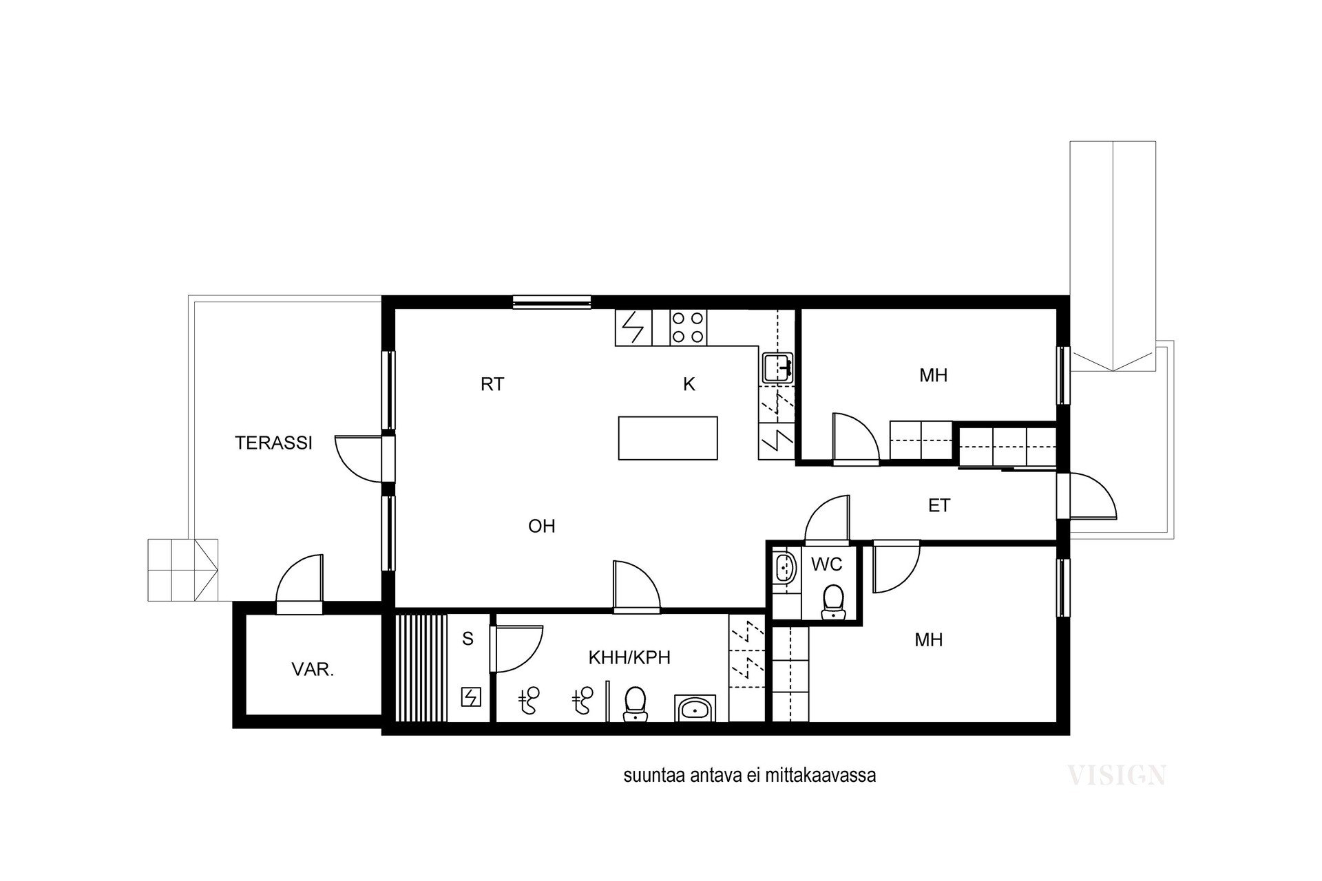 Asunnossa on kaksi makuuhuonetta, avokeittiö ja olohuone, jotka muodostavat toimivan kokonaisuuden. Oma sauna tarjoaa rentouttavia hetkiä kiireisen päivän jälkeen. Lisäksi asunnossa on kaksi wc:tä, joka tuo käytännöllisyyttä arkeen.