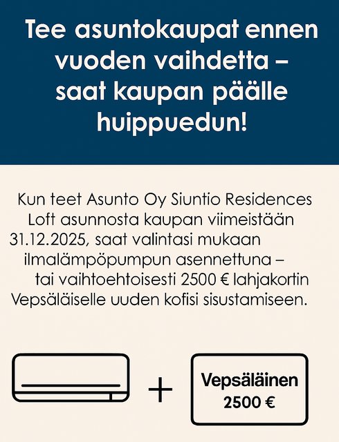 Kun teet LOFT-asunnosta kaupan viimeistään 31.12.2025, saat valintasi mukaan
