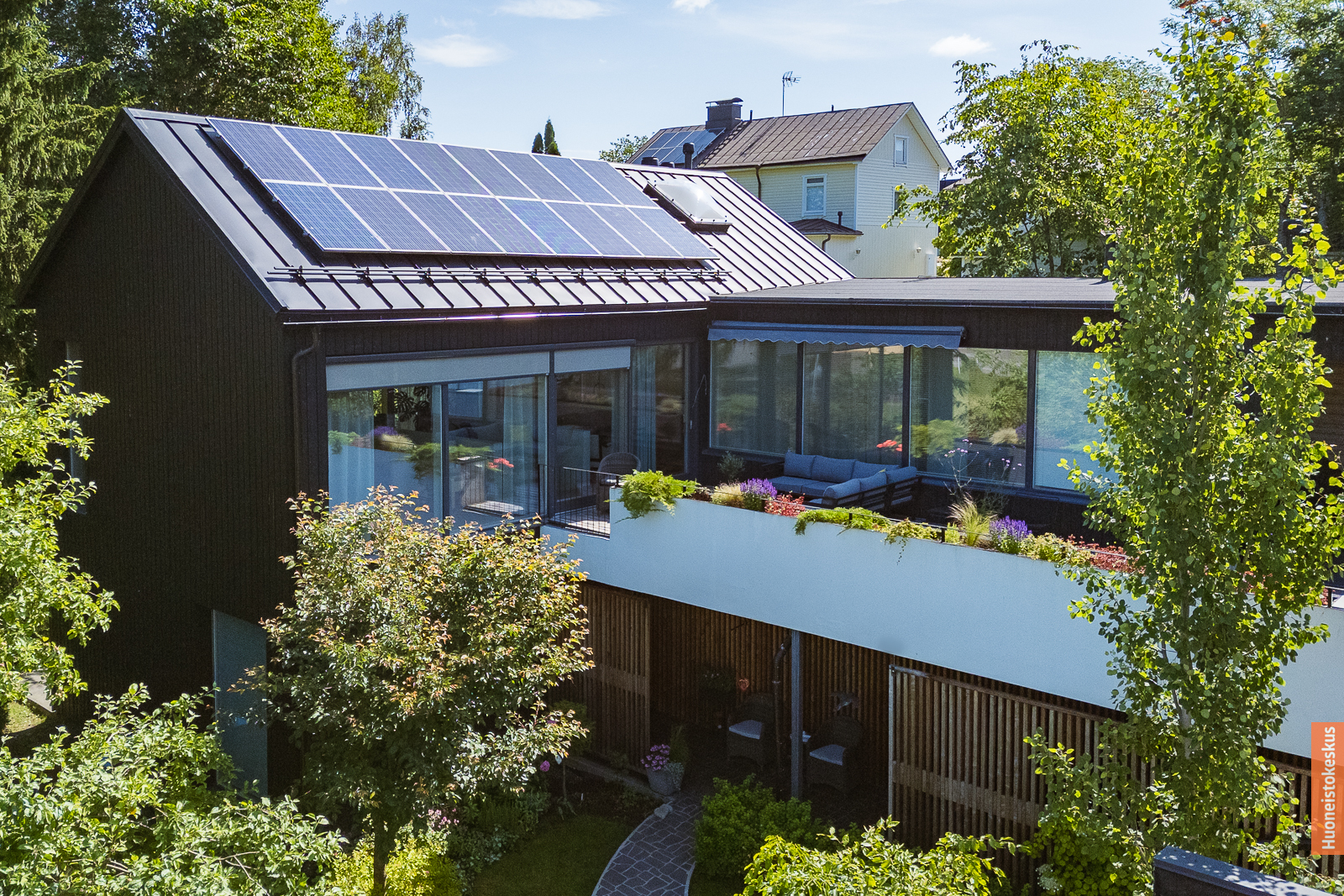 - Talo on rakenteiltaan energiatehokkuuden suhteen ja muutoinkin hyvässä kunnossa. Katolla olevat aurinkopaneelit parantavat energiatehokkuutta vielä entisestäänkin.