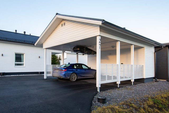 - Autokatoksen yhteydessä on tilava lämmin varasto. Ja pihalla on tilava kylmä varasto.