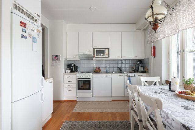 - Jääkaappipakastin, liesi, astianpesukone, ja liesituuletin