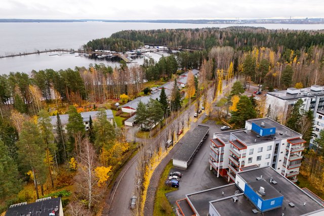 Lentävänniemi on rauhallinen ja luonnonläheinen asuinalue lähellä hyviä palveluita. Asunnolle on hyvät kulkuyhteydet niin omaa ajoneuvoa kuin julkisia kulkuneuvoja käyttävälle. Lähimmälle bussipysäkille on matkaa noin 300m ja ratikkapysäkille n. 600m. Suomensaaren kauniit ulkoilumaastot, talviuintipaikka saunoineen ja uimaranta aivan kotioven lähettyvillä.