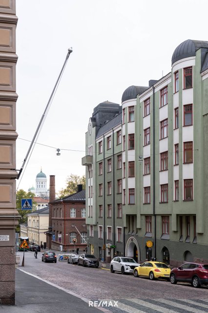 - Historiallista charmia ja merellistä kaupunkielämää: Liisankatu 21 sijaitsee Kruununhaan sydämessä, Helsingin arvokkaimpien ja tunnelmallisimpien kortteleiden keskellä. Alueen jugend- ja klassismitalot, kapeat kadut ja vehreät puistikot luovat ainutlaatuisen miljöön, jossa kaupungin historia ja rauhallinen tunnelma yhdistyvät moderniin elämään. Läheinen meri ja Vanha Kauppatori tuovat Kruununhaalle omaleimaisen, lähes eurooppalaisen kaupunkitunnelman. Palveluiden helppous ja arjen sujuvuus: Kaikki päivittäiset palvelut löytyvät kävelyetäisyydeltä – lähikaupat, kahvilat, laadukkaat ravintolat, apteekit ja pienet erikoisliikkeet palvelevat kulman takana. Helsingin keskustan laaja palvelutarjonta, Stockmann ja Kauppatori ovat vain lyhyen kävelymatkan päässä. Alueella on useita kouluja, päiväkoteja sekä oppilaitoksia, kuten Helsingin yliopisto ja Snellmanin koulu, jotka vahvistavat Kruununhaan arvostettua ja sivistynyttä luonnetta. Kulttuuria, luontoa ja viihtyisyyttä: Kruununhaassa yhdistyvät urbaani kaupunkielämä ja vehreät lähivirkistysalueet. Säätytalon ja Tuomiokirkon ympäristö, Tervasaaren puistoalue sekä Kaisaniemen kasvitieteellinen puutarha tarjoavat kauniita kävelyreittejä ja merinäkymiä. Kulttuurin ystäville läheisyydessä ovat Kansallisteatteri, Musiikkitalo ja useat museot – kaikki saavutettavissa kävellen. Liikenneyhteydet ja yhteys muuhun kaupunkiin: Kruununhaasta on erinomaiset yhteydet kaikkialle Helsinkiin. Raitiovaunu- ja bussilinjat kulkevat aivan vierestä, ja Helsingin päärautatieasema sekä metroasemat sijaitsevat vain noin 10 minuutin kävelymatkan päässä. Polkupyörällä ja jalan liikkuminen on helppoa, ja alue tarjoaa myös hyvät pysäköintimahdollisuudet asukkaille. Arvostettu ja rauhallinen kaupunginosa: Kruununhaka tunnetaan rauhallisuudestaan, korkeatasoisesta arkkitehtuuristaan ja yhtenäisestä ilmeestään. Alue houkuttelee asukkaita, jotka arvostavat historiallista ympäristöä, laadukasta asumista ja kävelyetäisyydellä olevia palveluita.