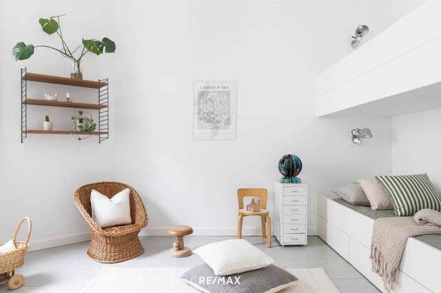 - Lattia: lankku, joka on maalattu betoluxilla, tavallista korkeammat lattialistat Seinät: maalattu Lastenhuoneessa puusepän mittatilaustyönä suunniteltu kiinteä kerrossänky ja vedettävä sänky vieraskäyttöön.