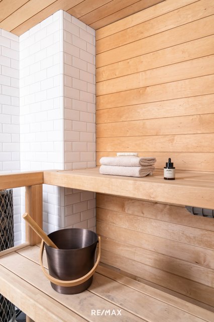 - SAUNAN VARUSTUS: - Saunassa iso lasiseinä - Lauteet ja IKI kiuas
