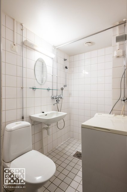 - WC-istuin, suihku, pesukoneliitäntä, peili, ja pesuallas
