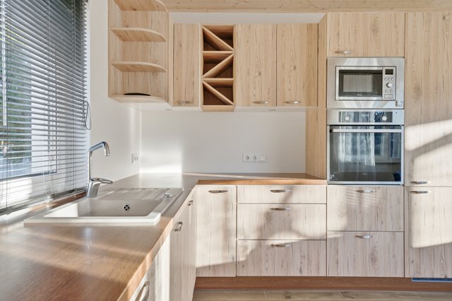 - Jääkaappipakastin, astianpesukone, erillisuuni, mikroaaltouuni, ja liesi
