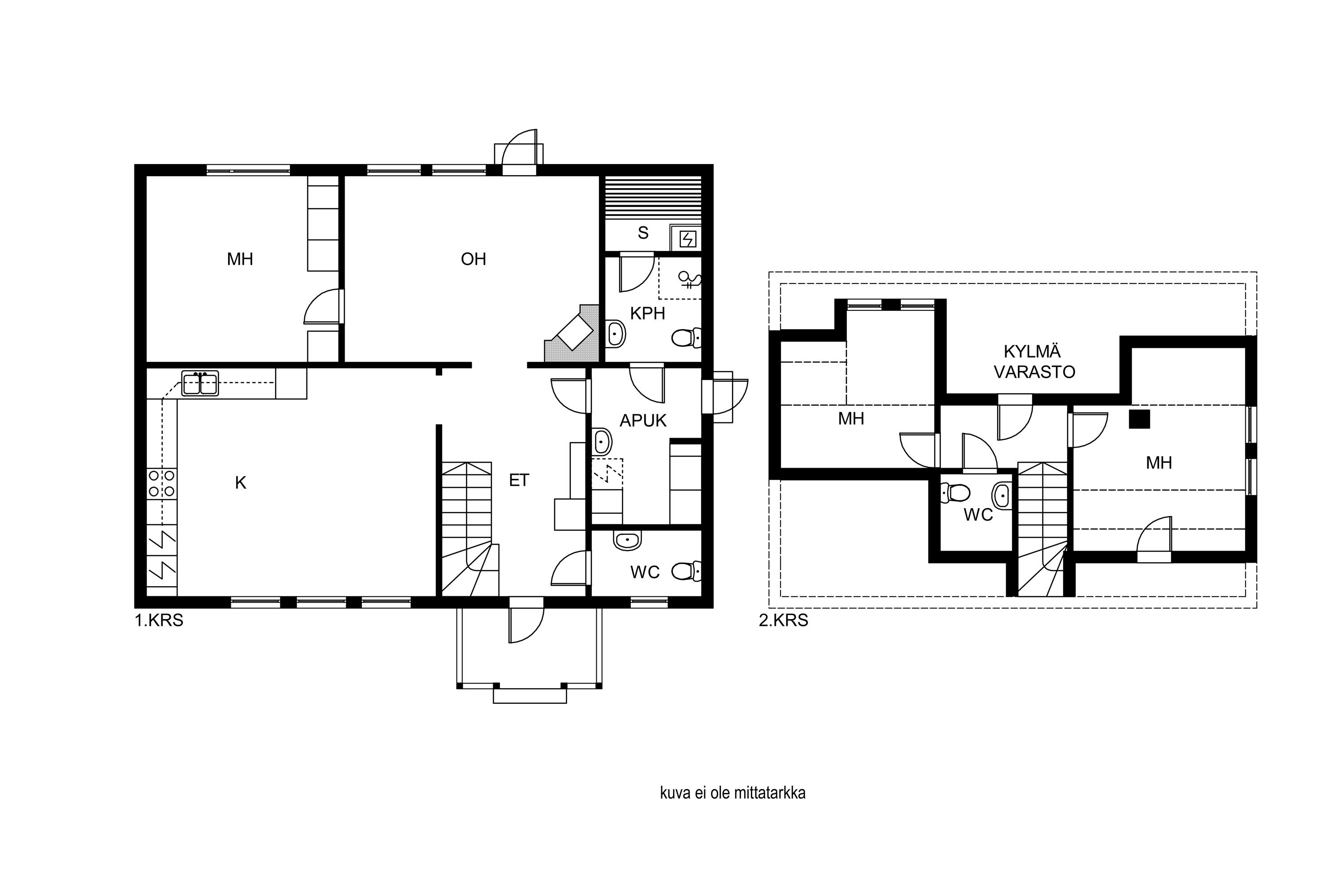 - Vaatehuone, kylmä ulkovarasto, seinäkaapit ja vinttikomero