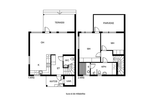 - Toimiva pohjaratkaisu ja tilavat makuuhuoneet.