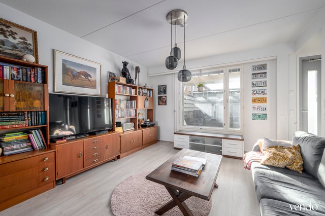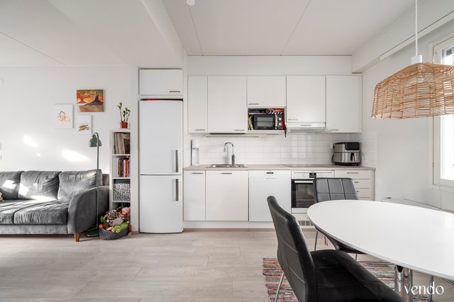 Avokeittiö- ja olohuonetilaan mahtuu hienosti isompikin ruokapöytä, tarvittaessa myös erillinen työtila ja olohuoneen isommatkin kalusteet. Makuuhuoneessa on todella hyvin kaappitilaa. Kylpyhuone+ sauna on lähes koko asunnon mittainen. Oma pieni piha luo lisää asumismukavuutta.