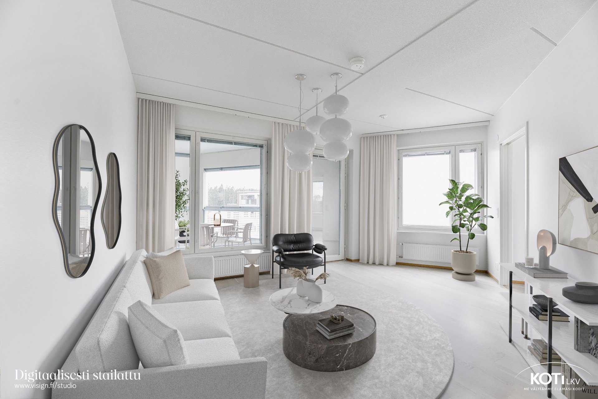 - Olohuoneesta käynti lasitetulle parvekkeelle