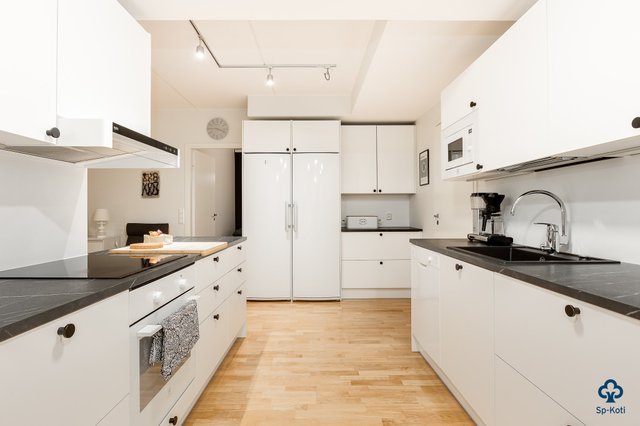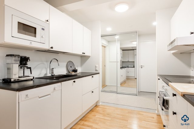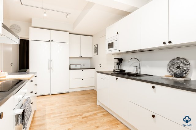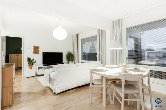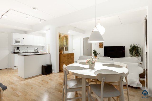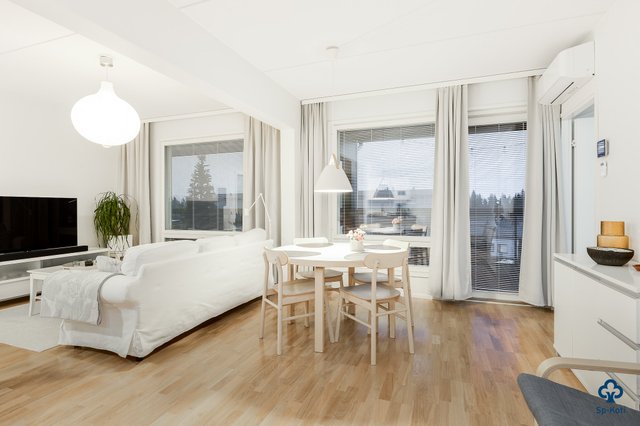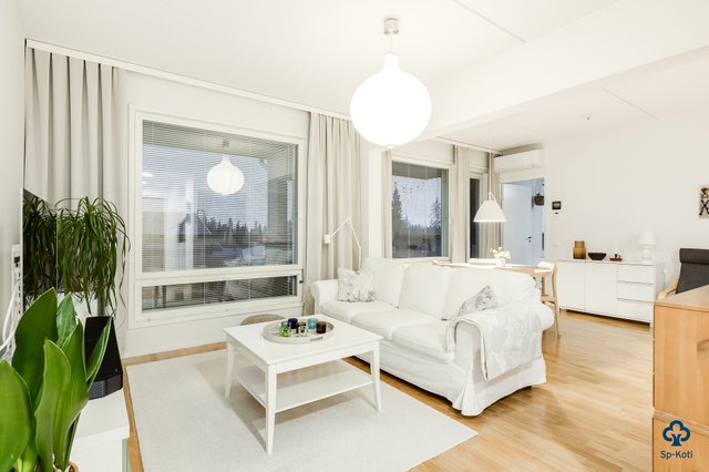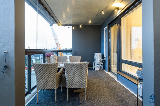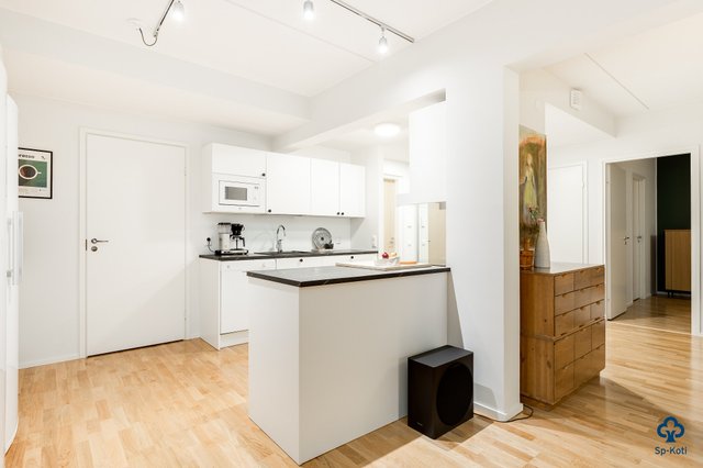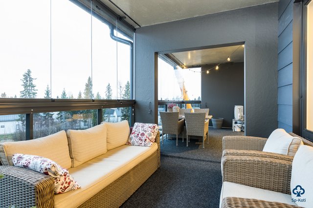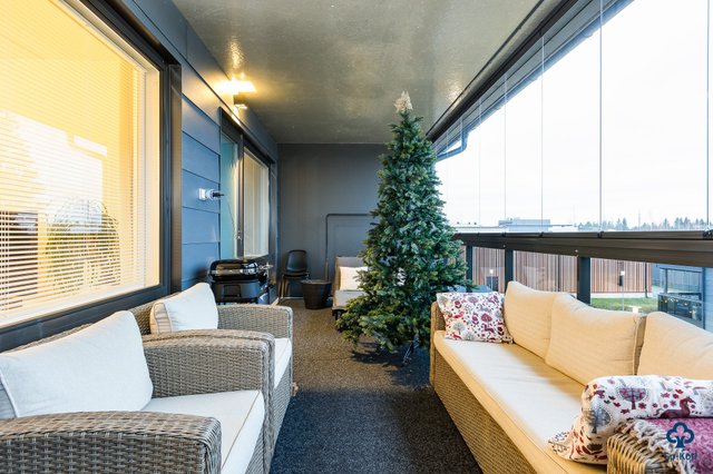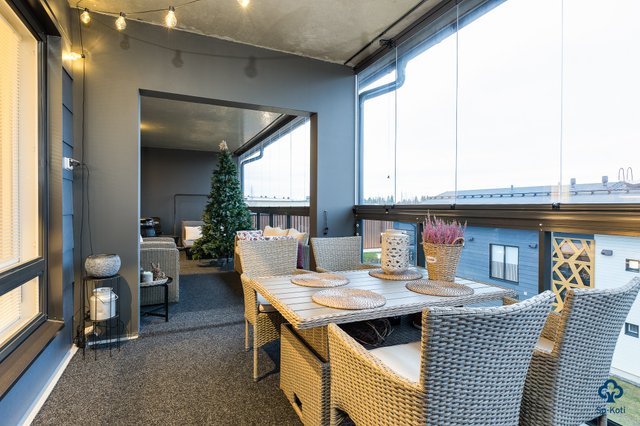 Asunnon sydämenä on valoisa olohuone ja moderni avokeittiö — avara kokonaisuus, jossa perheen ja ystävien kanssa on ilo viettää aikaa. Kodissa on kolme tilavaa makuuhuonetta: kahdessa kaapistot säilytykseen ja kolmannessa oma tilava vaatehuone. Oma sauna ja hulppea 29,4 m² lasitettu parveke tuovat ripauksen arjen luksusta ja lisäävät asumismukavuutta.