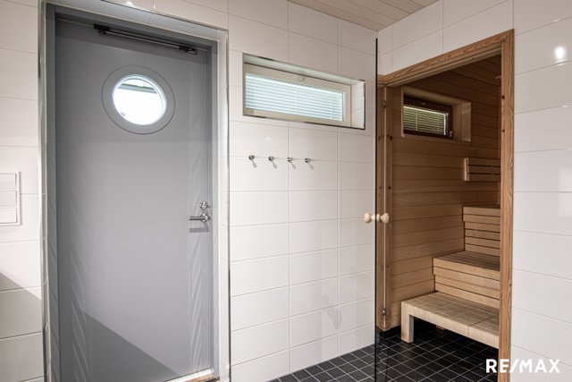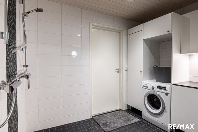 - Lattialämmitys, pesuallas, lattiakaivo, pesukoneliitäntä, pyykkikaapit, ja tila pesutornille