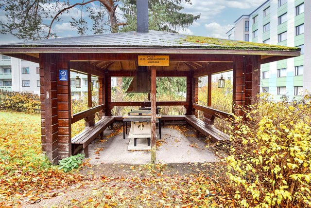 Yhtiöllä on hyvät yhteiset tilat, kuten kaksi saunaosastoa, pesutupa ja urheiluvälinevarasto.