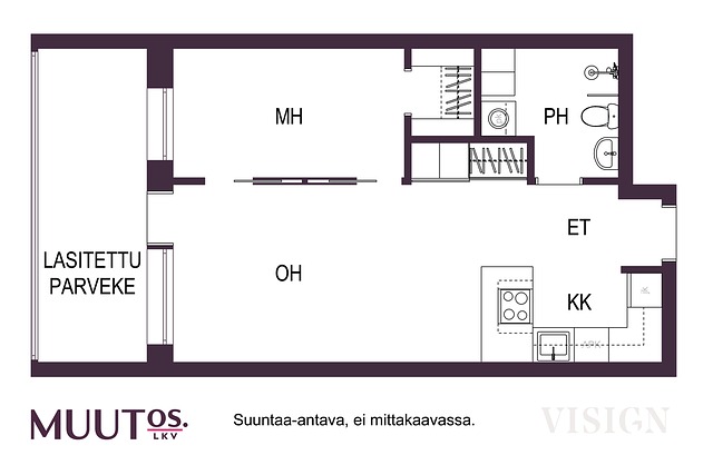 - Pinta-ala ei ole tarkistusmitattu. Pinta-ala saattaa poiketa olennaisestikin ilmoitetusta pinta-alasta. Todellinen pinta-ala voi siis olla esitteessä, yhtiöjärjestyksessä tai isännöitsijäntodistuksella mainittua suurempi tai pienempi. Hinta ei ole pinta-alaperusteinen.
