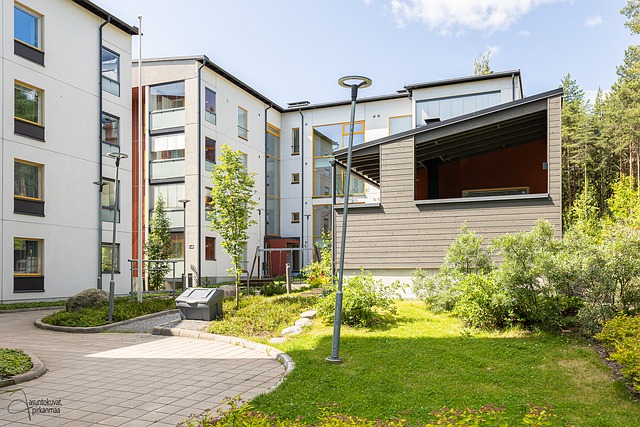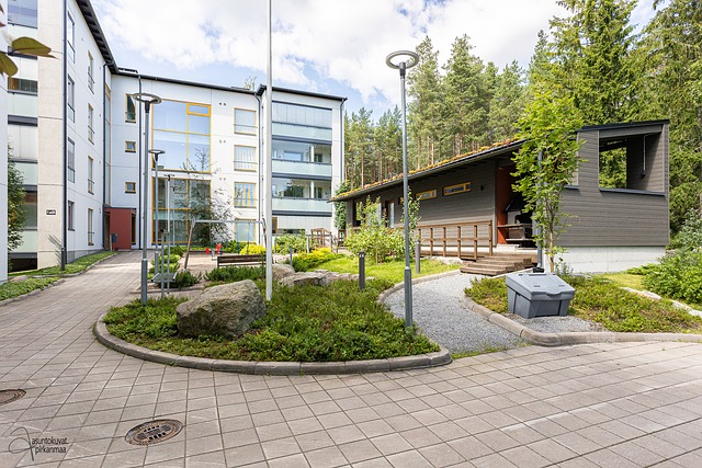 - Kiva pihasauna taloyhtiön pihapiirissä.
