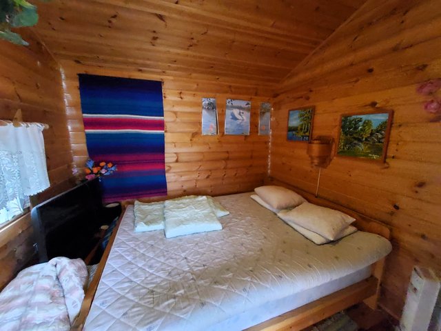 - Mökissä makuusoppi sekä parvi. Nukkuma-aitassa kaksi makuuhuonetta.