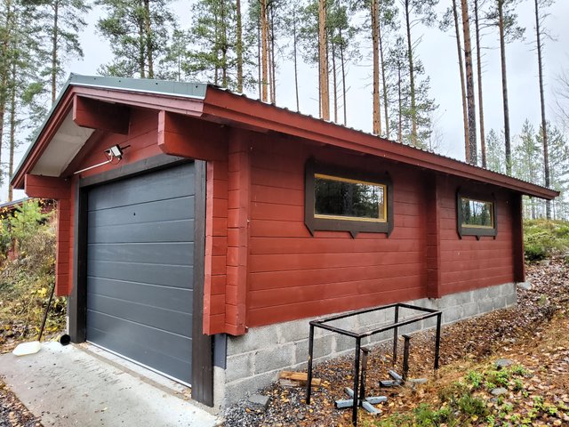 - Autotalli, liiteri, ja varasto kompostoiva puucee