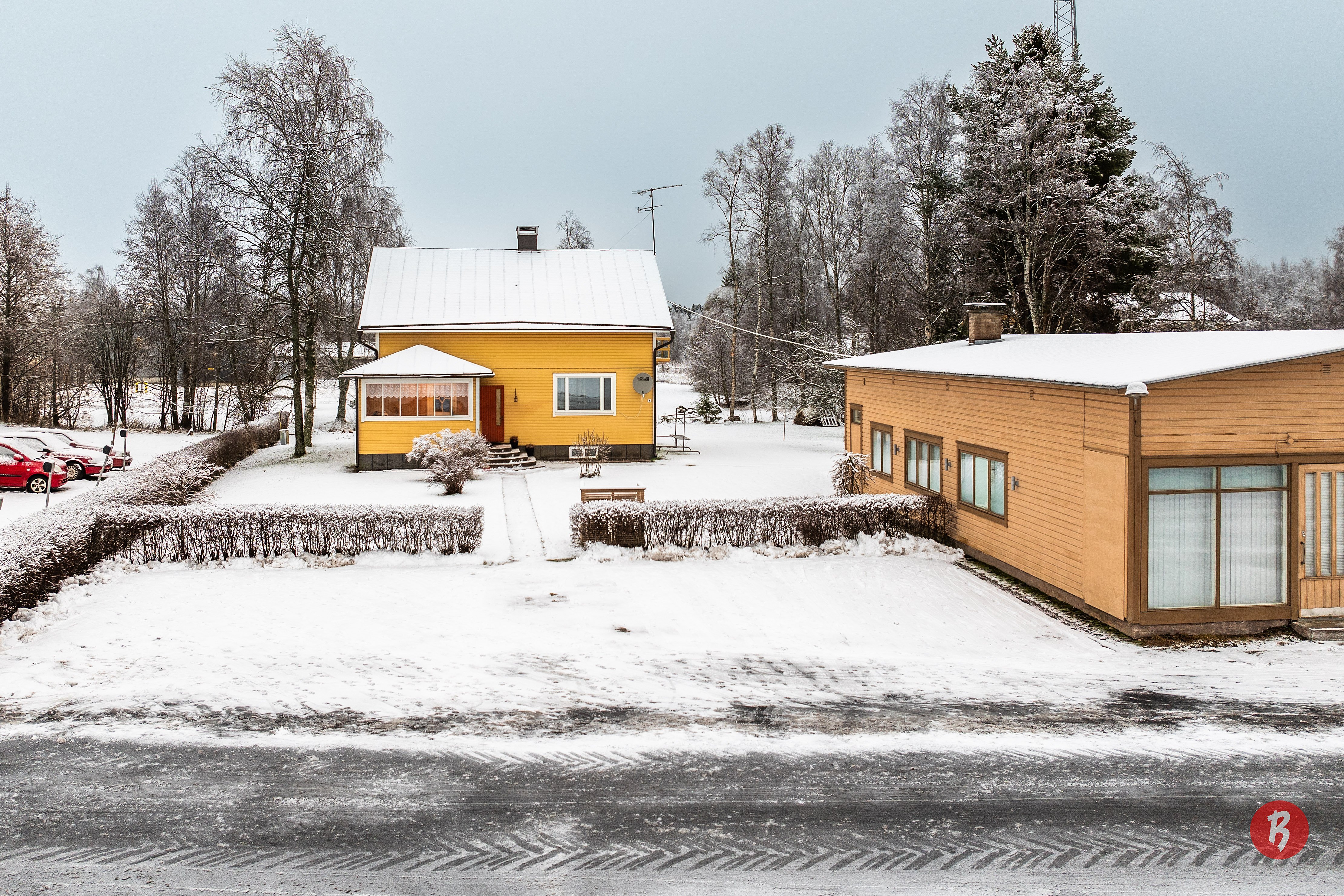 2h+k+wc+kuisti + 2h+k+wc+parveke +kellari: khh+kph+s+varastotilaa +huolto-/korjaamohalli