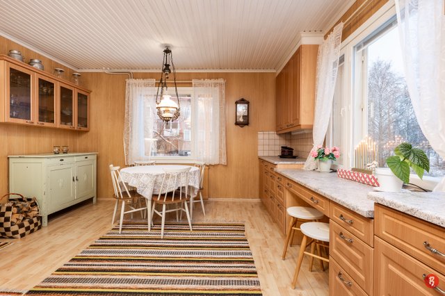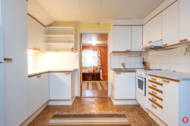 1989 yläkerran keittiön kaapit uusittu. Muoviliitännät alakerran vessasta alakerran keittiöön ja yläkerran vaatehuoneesta yläkerran vessaan ja keittiöön.