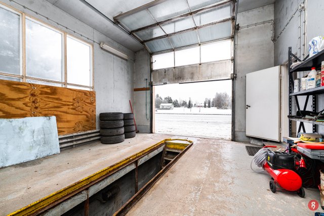 - Huolto-/korjaamohalli rakennettu 1959, jossa huolto-/korjaamotilat sekä ulkosauna, puuliiteri ja puucee, kerrosala 171m2. Rakennuksen tilat sopii myös talliksi ja säilytystilaksi asuntoautoille, veneille ja erilaisille koneille. ns. SHELL-huoltorakennukseen on seuraavat remontit tehty: 1986 remontoitu kioskin tilat huoltoon. Jonka yhteydessä lämmitys ja vesiputket katkaistu/suljettu talolta huoltorakennukseen. 1990-luvulla peltikatto uusittu, 2019 puuoven alapuolen paneeleja uusittu, 2019-2020 huoltorakennus maalattu, 2020 ylös ja alas valaisevat seinälamput asennettu, 2021 etuseinän puolelle kivijalan viereen kivireunus huolto-oven molemmin puolin