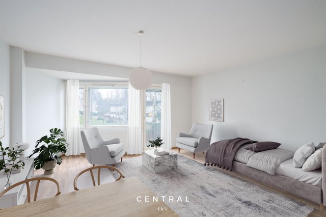 - Tilava, valoisa, etelään avautuva huone jossa uloskäynti taloyhtiön takapihalle.