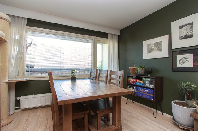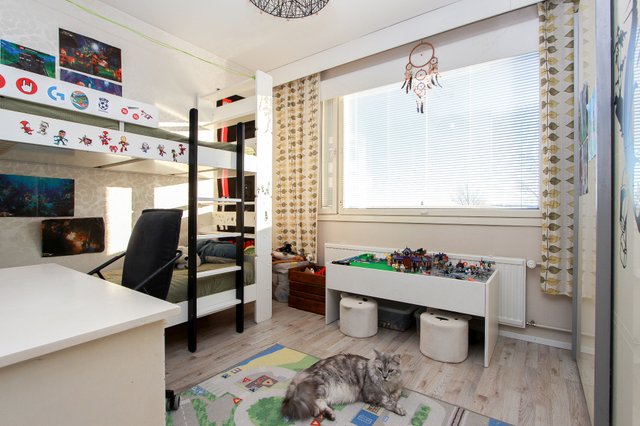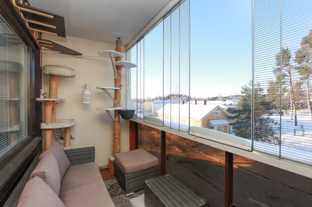 Asunnon keittiötä on remontoitu vuonna 2019, ja se tarjoaa modernit puitteet ruoanlaittoon, sisältäen muun muassa keittiösaarekkeen ja laadukkaat kodinkoneet. Olohuoneessa on kaunis parkettilattia, joka tuo lämpöä ja kodikkuutta tilaan. Kaksi makuuhuonetta tarjoavat mukavasti tilaa perheelle tai työtilaksi. Lasitettu länsiparveke on täydellinen paikka nauttia ilta-auringosta.