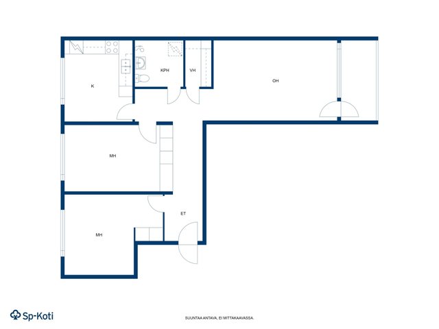 - Ei tarkistusmitattu. Pinta-alat saattavat tämän ikäisissä kohteissa (yhtiö rekisteröity ennen 01.01.1992) poiketa olennaisestikin asuinrakennusten nykyisten mittaustapojen ja standardien (SFS 5139) mukaan laskettavasta asuintilojen pinta-alasta. Pinta-ala voi siis olla edellä mainittua pienempi tai suurempi.
