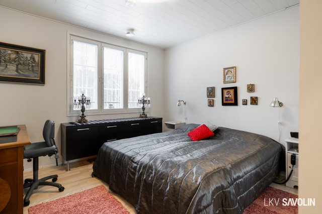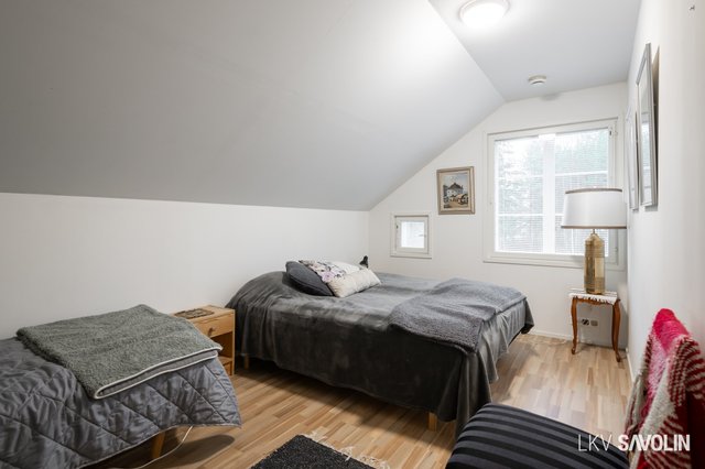 - Alakerran makuuhuoneissa parkettilattia, yläkerran makuuhuoneissa laminaatti.