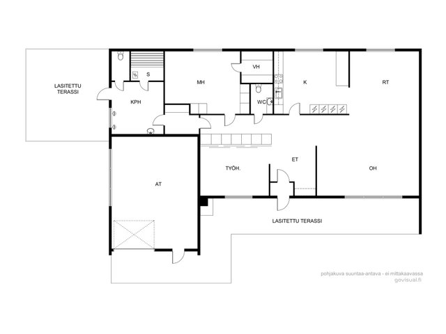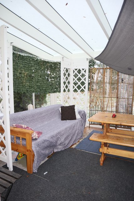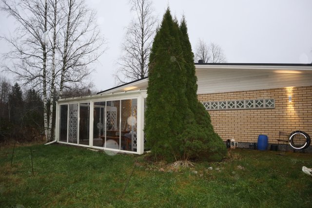 - Kaksi lasitettua terassia, toinen sisäänkäynnin yhteydessä ja toinen talon päädyssä.