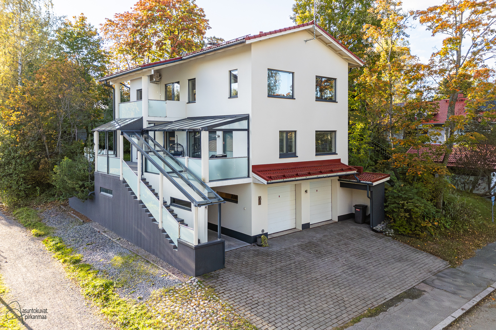 Tilaa on runsaasti: neljä suurta makuuhuonetta tarjoavat väljät ja käytännölliset tilat isonkin perheen arkeen. Kaikissa huoneissa on selkeä, toimiva pohjaratkaisu ja runsaasti valoa. Erityisenä lisänä on lämmin kahden auton autotalli, josta on suora käynti alakerran eteiseen.