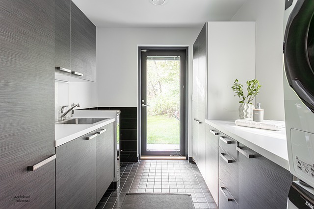 - Tilava kodinhoitohuone, jossa hyvät säilytystilat. Varustus: pesukoneliitäntä, vesipiste, lattiakaivo pesupisteellä, kiinteät valaisimet ja kaapistot.