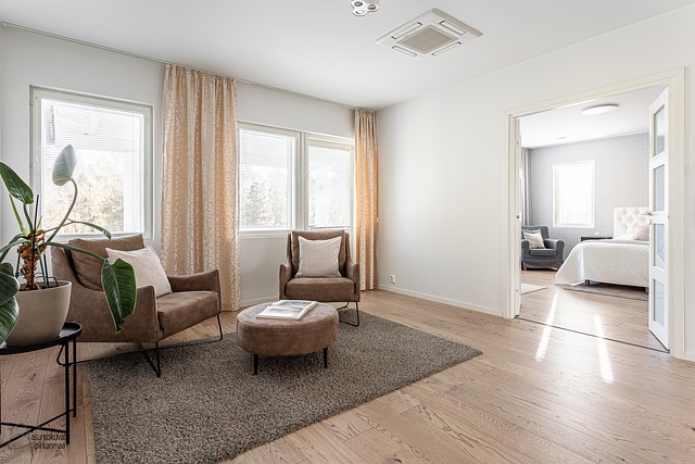 - Kiinteät valaisimet, sälekaihtimet ja ilmalämpöpumppu.