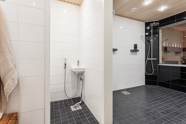 - Todella tilava kylpyhuone, jossa on siistit laattapinnat sekä yhteydessä myös erillinen wc. Varustus: 2x suihku ja kiinteät valaisimet. Lattia- ja seinäpinnat laattaa.