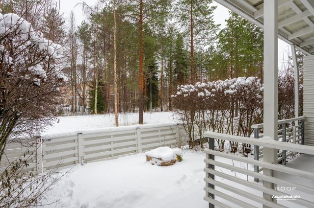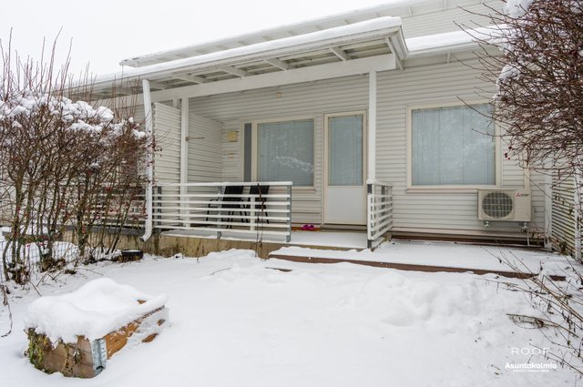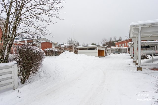 Avara pohjaratkaisu tuo asuntoon tilantuntua ja toimivuutta. Alakertaan sijoittuu olohuoneen lisäksi myös juuri remontoitu keittiö, jossa myös kodinkoneita on viime vuosina uusittu. Olohuone on todella tilava ja valoissa ja siitä on kulku katetulle terassille, jossa nautit aamuauringosta. Alakerrassa on talon toinen kylpyhuone. Kylpyhuoneen yhteydessä on alakerran wc ja tilaa riittää myös pesutornille. Omaa saunaa lämmittelet aina halutessasi. Yläkertaan sijoittuu kaksi hyvän kokoista makuuhuonetta ja toisen makuuhuoneen yhteydessä on vaatehuone sekä ranskalainen parveke. Yläkerrassa sijaitsee myös talon toinen kylpyhuone. Kesällä 2024 portaikkoon asennettiin viilentävä ilmalämpöpumppu, joka pitää sisäilman mukavan raikkaana myös kesäkaudella. Säilytystilaa on erinomaisesti; kaapistojen lisäksi molemmissa kerroksissa on vaatehuone ja huoneiston edessä on varasto. Sisäänkäynnin edessä on tilaa myös kahdelle autolle; toinen sijoittuu mukavasti katoksen alle.