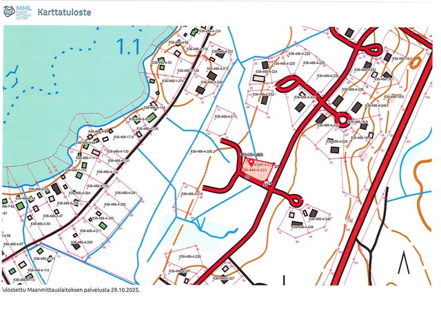 Rasitteista vapaa 1680 m² tontti. Tontilla mökki ja huvimaja, jossa voi syödä eväitä ja varastorakennus, jossa voi pitää työkaluja.