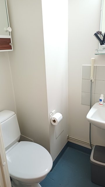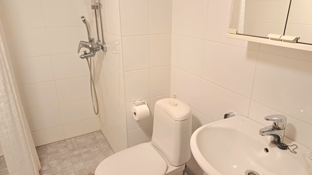 - WC-istuin, suihku, pesukoneliitäntä, peilikaappi, pesuallas, ja bidee-suihku